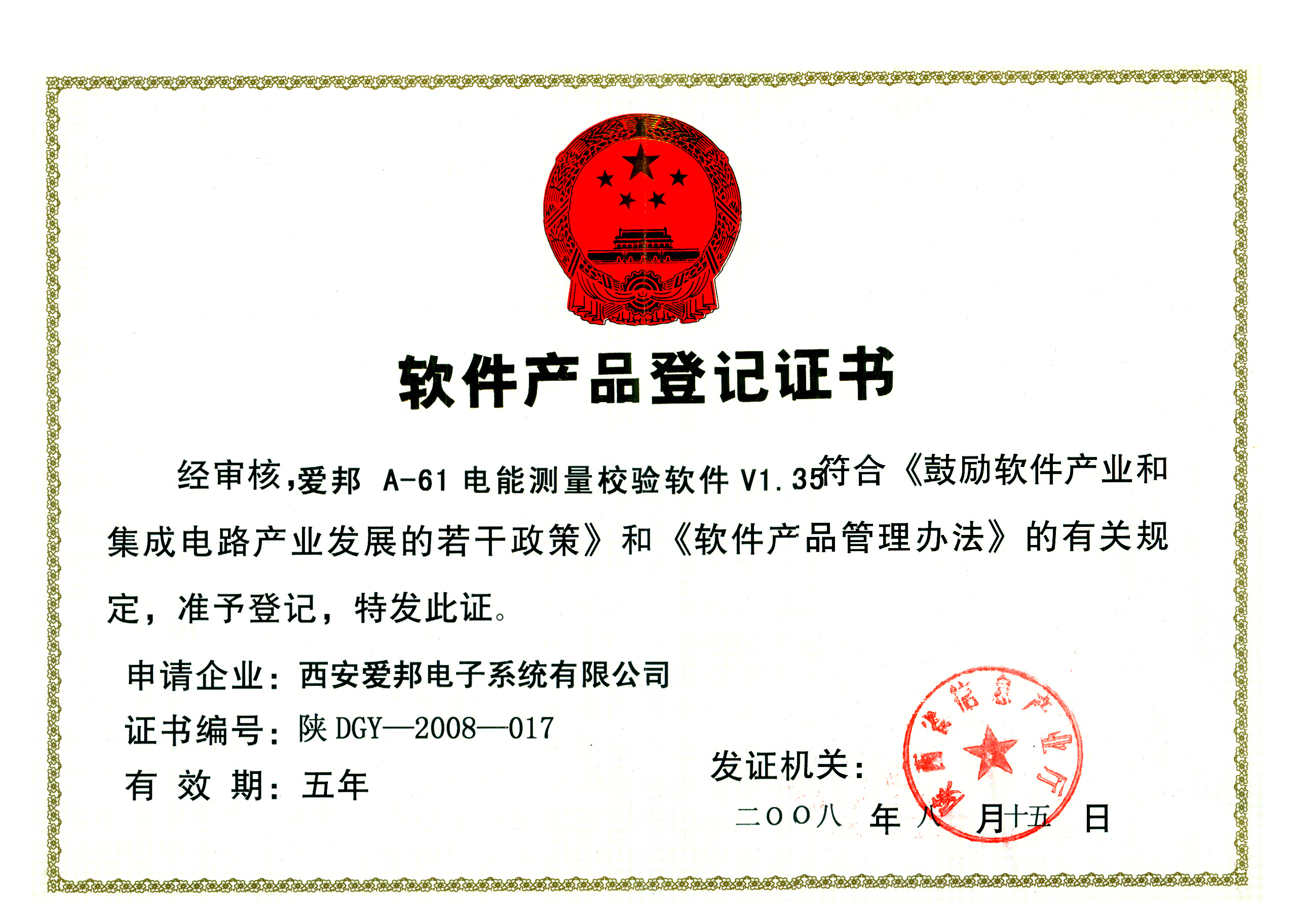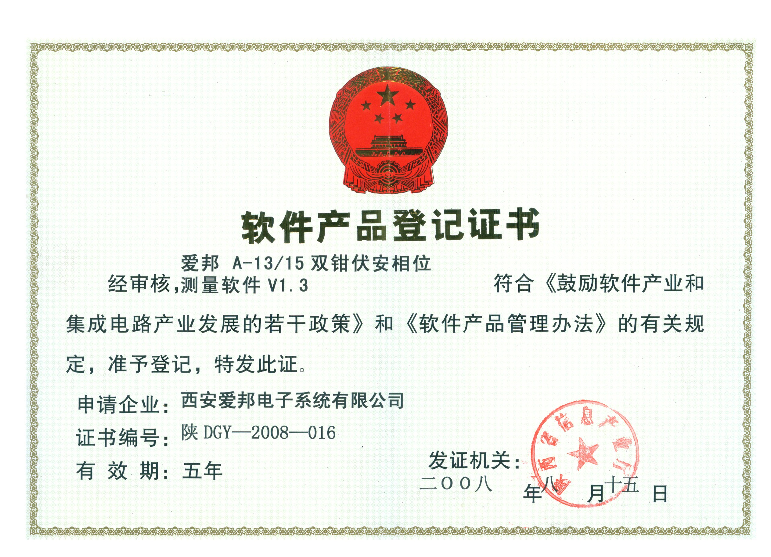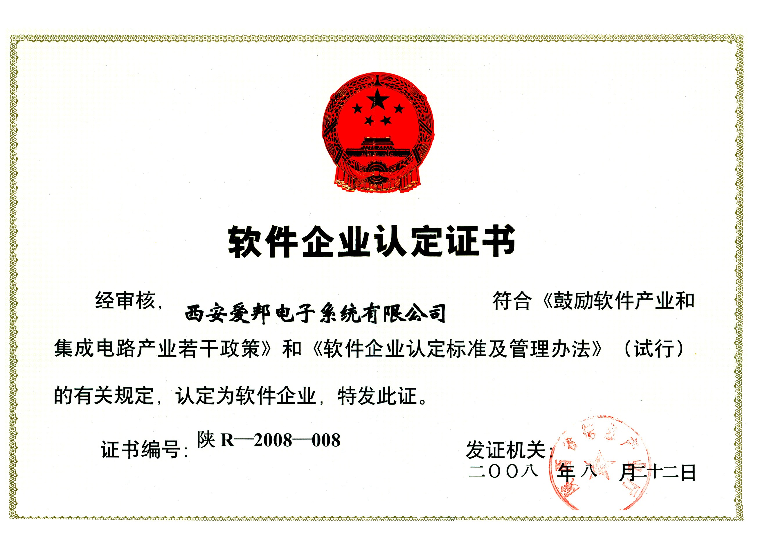 愛邦公司是陜西省認定的第一批國家高新技術(shù)企業(yè)、第一批省級優(yōu)秀軟件企業(yè),是西安高新區(qū)“優(yōu)秀瞪羚企業(yè)”和“知識產(chǎn)權(quán)優(yōu)勢企業(yè)”,企業(yè)先后獲得西安市政府“中小企業(yè)創(chuàng)新工程”、陜西省政府“13115重大科技專項”、國家科技部“中小企業(yè)創(chuàng)新基金”支持,被國家知識產(chǎn)權(quán)局評為“專利工作先進單位”,企業(yè)商標(biāo)連續(xù)三次榮膺“陜西省著名商標(biāo)”稱號。