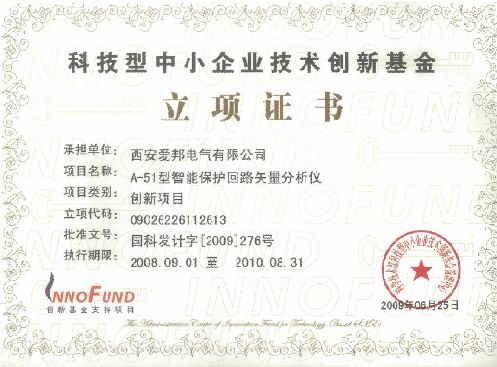 科技部創(chuàng)新基金立項證書