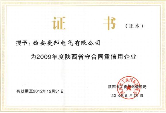 陜西省守合同重信用證書