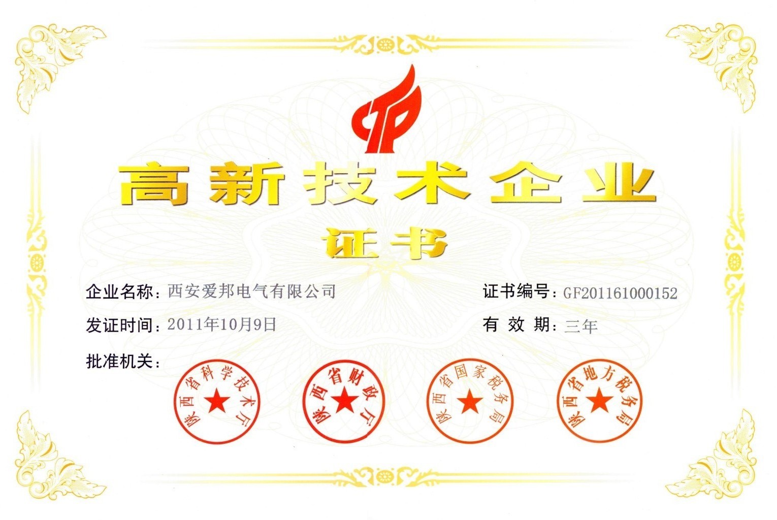 高新技術(shù)企業(yè)證書
